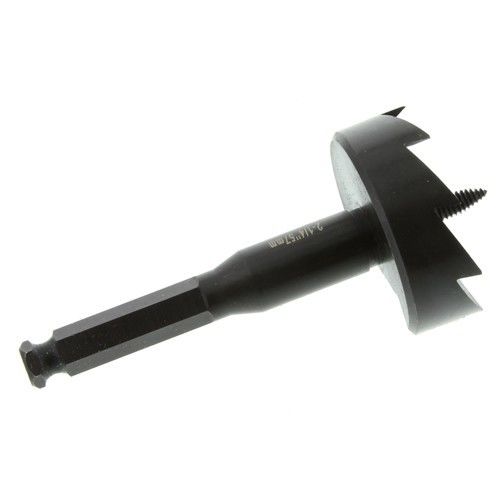 Profesyonel ahşap işleme uygulamaları için tasarlanmış, tek kesim siyah kaplamalı, yüksek karbonlu çelikten üretilmiş kendinden beslemeli Forstner ucu.